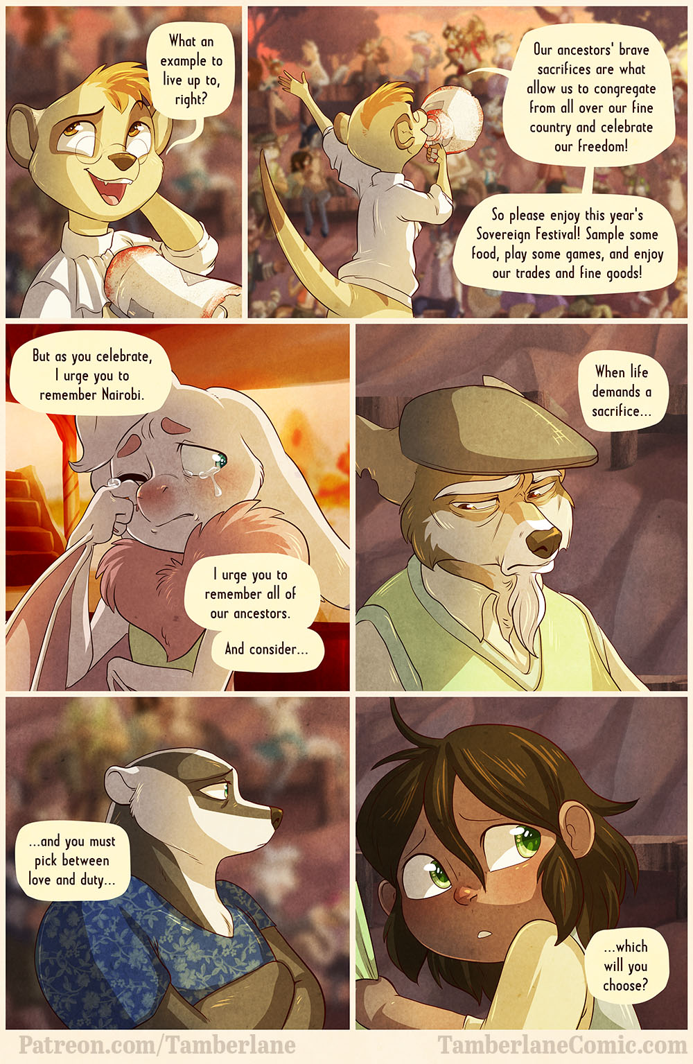 TIMMOTHY: Genießt unser diesjähriges Unabhängigkeitsfest! Dank der tapferen Opfer unserer Vorfahren können wir aus allen Teilen unseres schönen Landes zusammenkommen und feiern! Genießt also gutes Essen, spielt ein paar Spiele und feiert die Früchte unserer Arbeit!